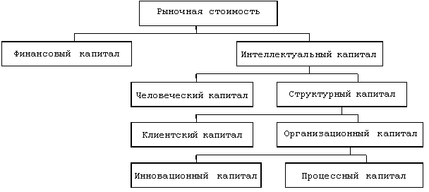 Интеллектуальный капитал — это активы, представляющие собой мысленные (tacit) знания, т.е. неотделимые от сотрудников, и знания, воплощенные в результатах мыслительной деятельности (структурах, интеллектуальной собственности, клиентах и др.).