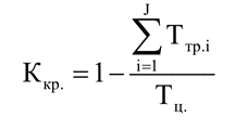 Прямоточность характеризуется коэффициентом Кпр., представляющим разность между единицей и отношением длительности транспортных операций Ттр. к производственному циклу Тц.: