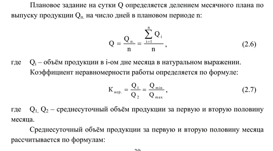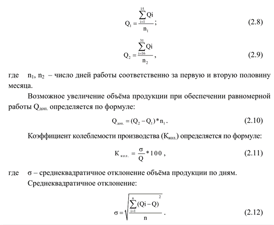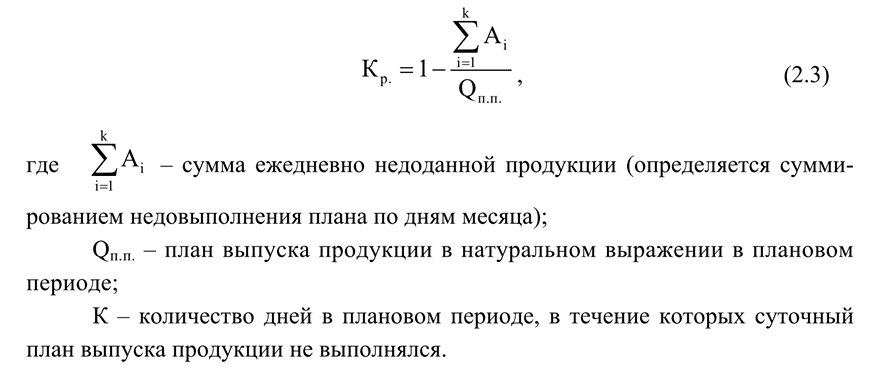 Принцип ритмичности предполагает равномерный выпуск продукции. Уровень ритмичности характеризуется коэффициентом ритмичности Кр., который определяется по формуле: