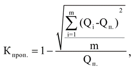 Пропорциональность в организации производства предполагает соответствие пропускной способности (относительной производительности в единицу времени) всех звеньев предприятия – цехов, участков, отдельных рабочих мест по выпуску продукции. Степень пропорциональности производства характеризуется коэффициентом пропорциональности, который тем больше, чем меньше величина отклонения пропускной способности каждого частичного производственного процесса от планового объёма выпуска продукции: